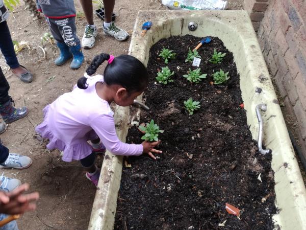 The kids took their experiment home and replanted the beans into soil in the garden.