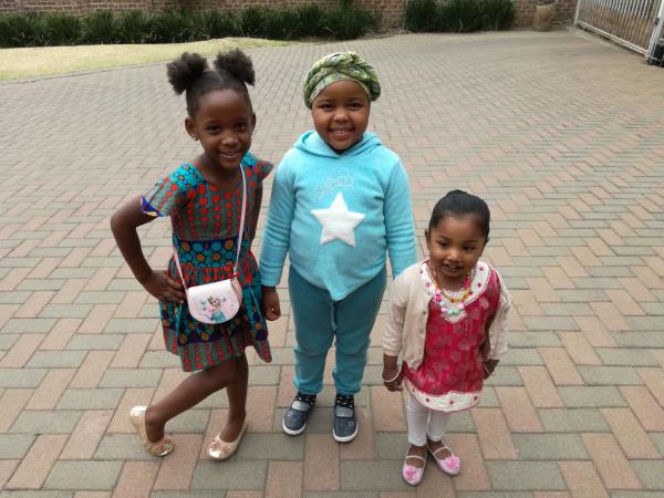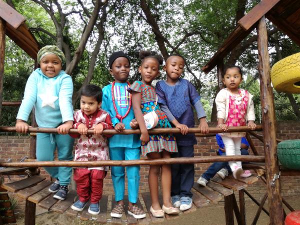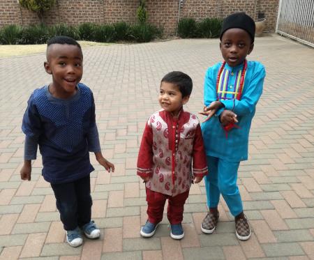 Kids and Teachers show off their heritigate day outfits in the playground.