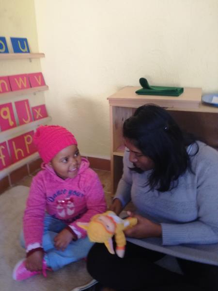 The purpose of this activity is to teach the child how to transfer dry materials with a spoon. This activity also helps prepare the child to eat independently.