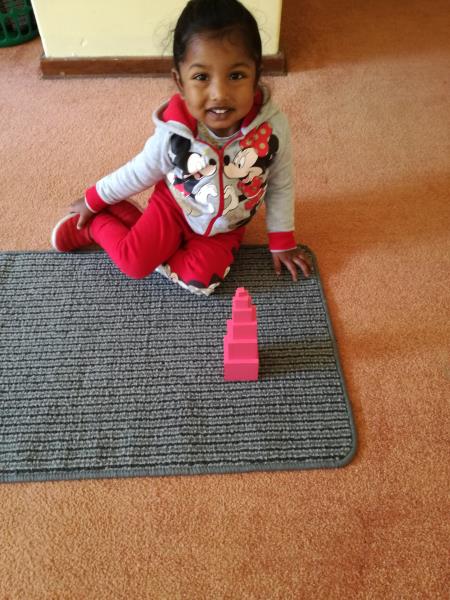 The Pink Tower is a traditional piece of Montessori "visual" work within the Sensorial "curriculum"